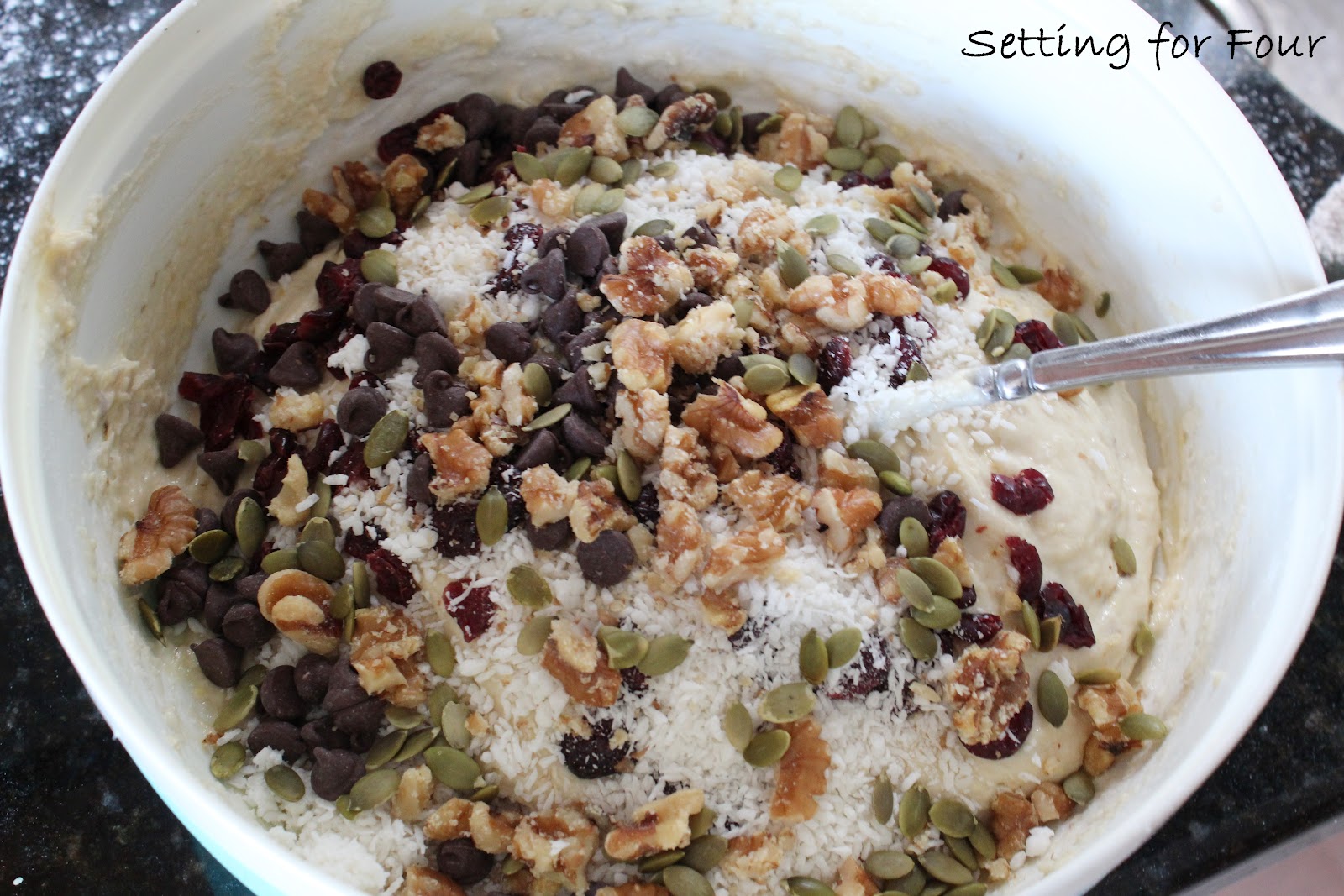 It’s moist and hearty and full of yummy nuts, seeds, cranberries, chocolate and coconut!