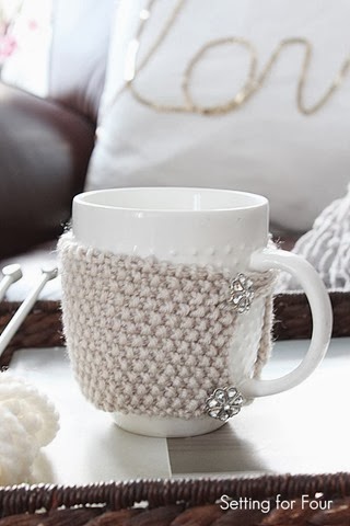 I love to curl up in my chair with a cup of coffee or tea and wrap my fingers around this DIY Cup Cozy with vintage buttons! ( Another touch of sparkle!)