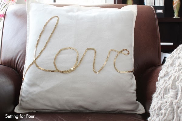 With just 3 yards of gold sequin trim (I already had the pillow cover) I added the word ‘love’! I’m smitten with the sparkle and shine!