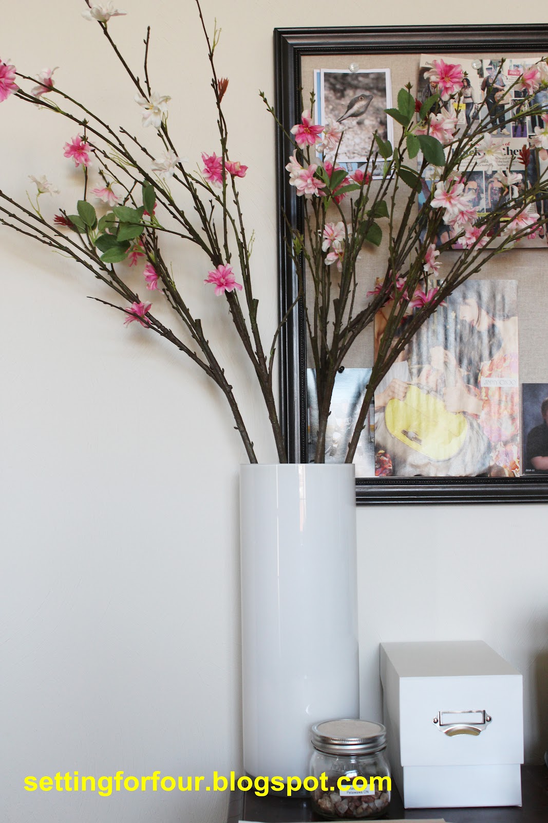 Your vase looks great with those pretty branches! I just painted a vase white yesterday… I’m wishing now I had used oil paint, because that’s a really smart idea!
