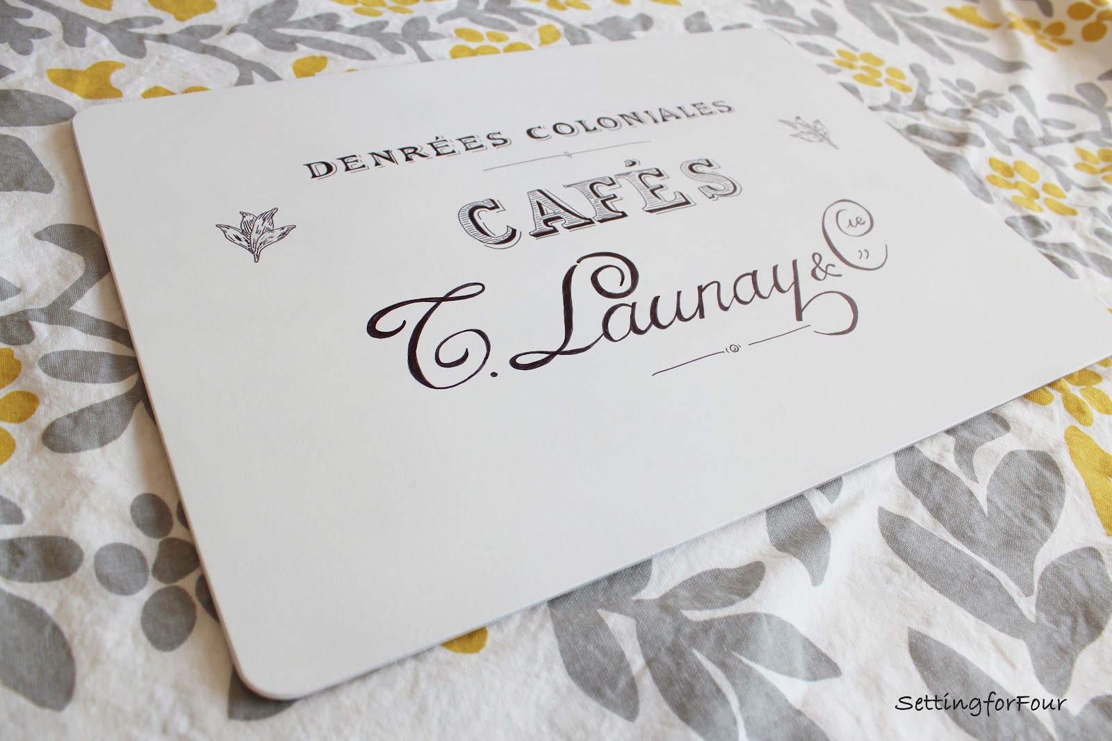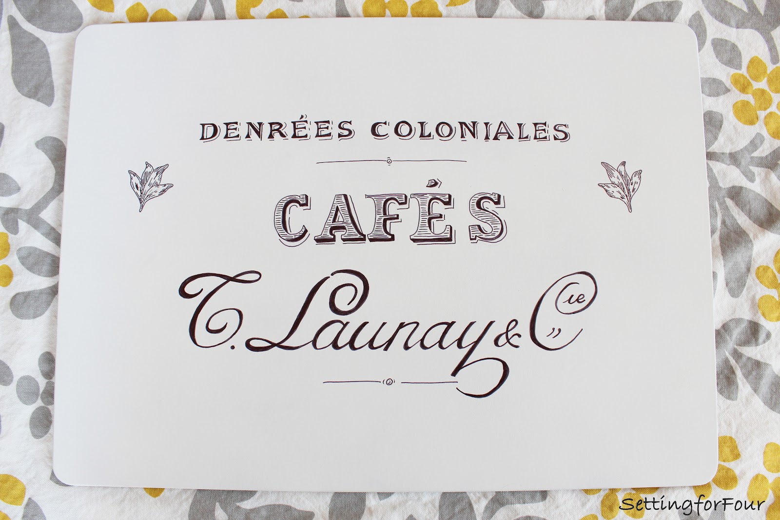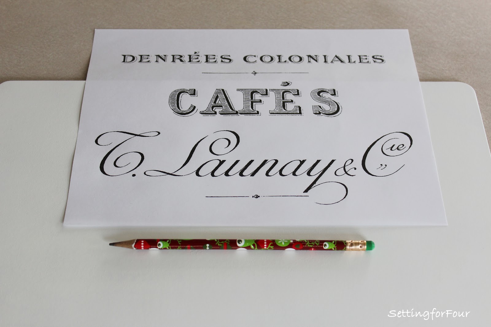 – Center French Cafe Printable printable on placemat so that the pencil shaded-in side is in contact with the top spray painted side of the placemat.