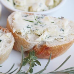 Today I’m sharing a delicious savory Garlic Herb Butter recipe with you, just in time for the holidays! This gourmet butter is so quick and easy to make and prevents your turkey from drying out (place it under the skin before roasting) and will give it an extra juicy, buttery flavour! This home made Herb Butter is also tasty served with warm bread and rolls, in pasta dishes and with meats like steak too!
