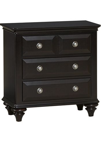I love this bed from Haverty’s. It’s a slat bed, which means that there are many wooden slats running along the width of the bed. So instead of having to purchase both a mattress and box spring, all that is required is a cheaper mattress/bunkie board set! The bunkie board (a large wooden board wrapped in fabric) gives a bit more support and stability for the mattress. The other thing that sold us on this bed is that it has 2 drawers at the end of it (you can’t have enough storage in a teen’s room!). Each drawer has two beautiful brushed nickel knobs. I love the dark merlot stained cherry veneer, the panel headboard and turned feet too. It’s a masculine bed, great for a teen boy and will be perfect for him to take later to his first apartment or home. Also, it’s a very solid bed which I believe will last a long time.