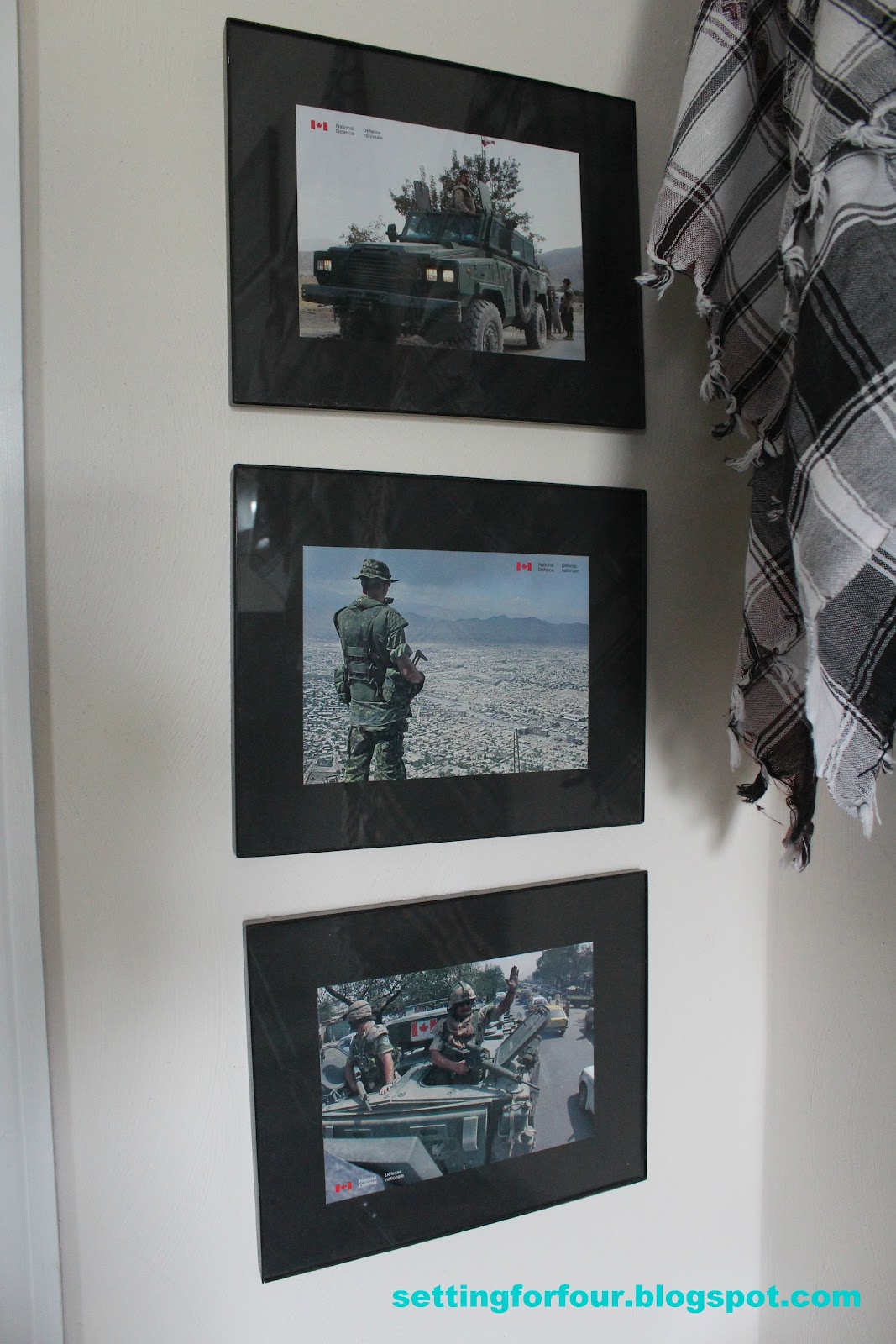 Several framed postcards of the Canadian military presence in Afghanistan (from my hubby’s deployments there).